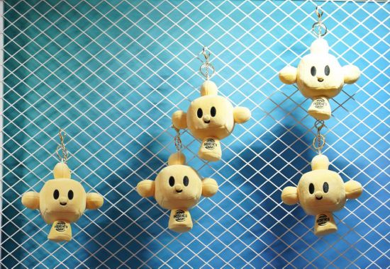 11月29日,链博会媒体工作区的一处柜台上摆放着“链氪”毛绒玩具。